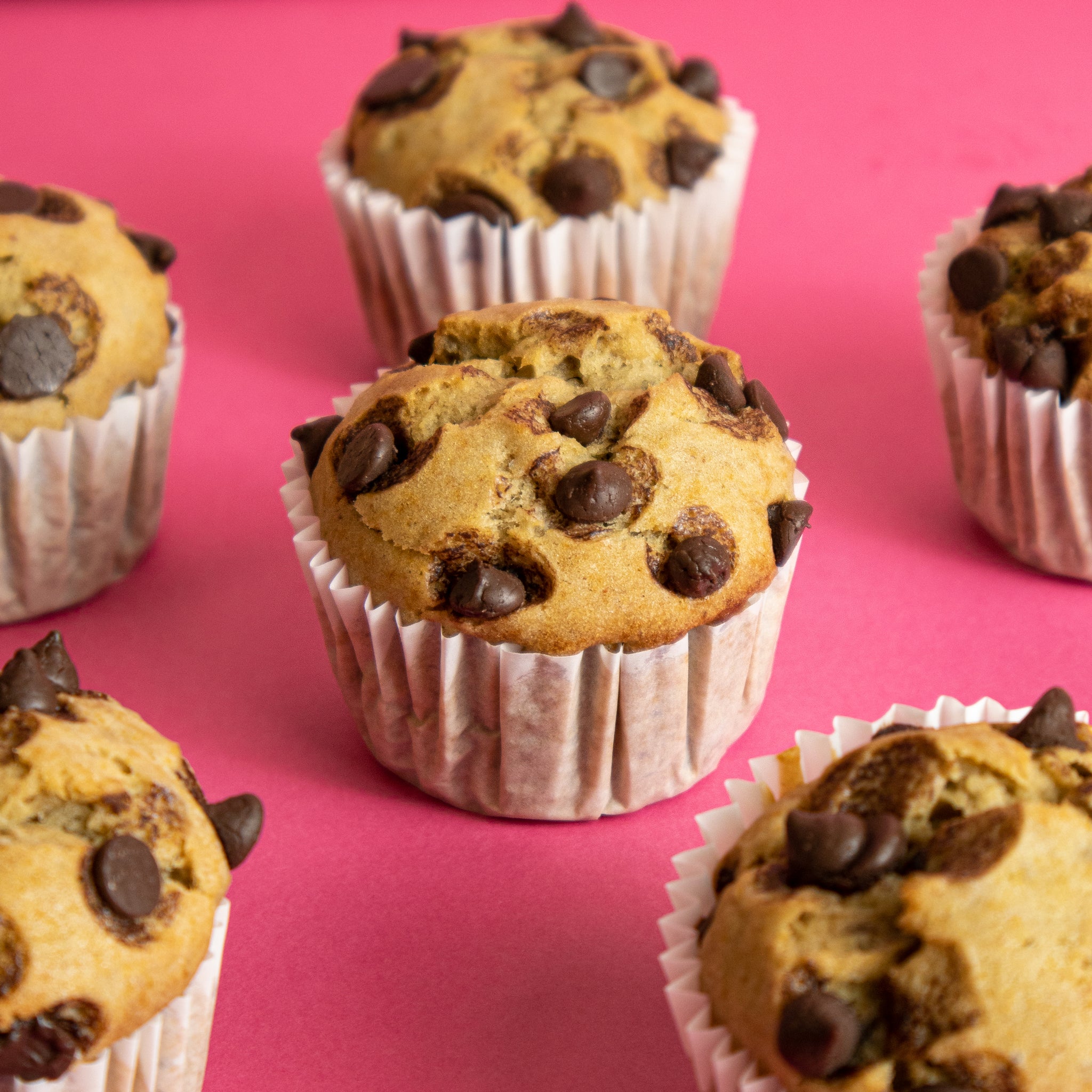Bollos de plátano con chispas de chocolate, bajos en azúcar y llenos de sabor. El equilibrio ideal entre antojo y bienestar.