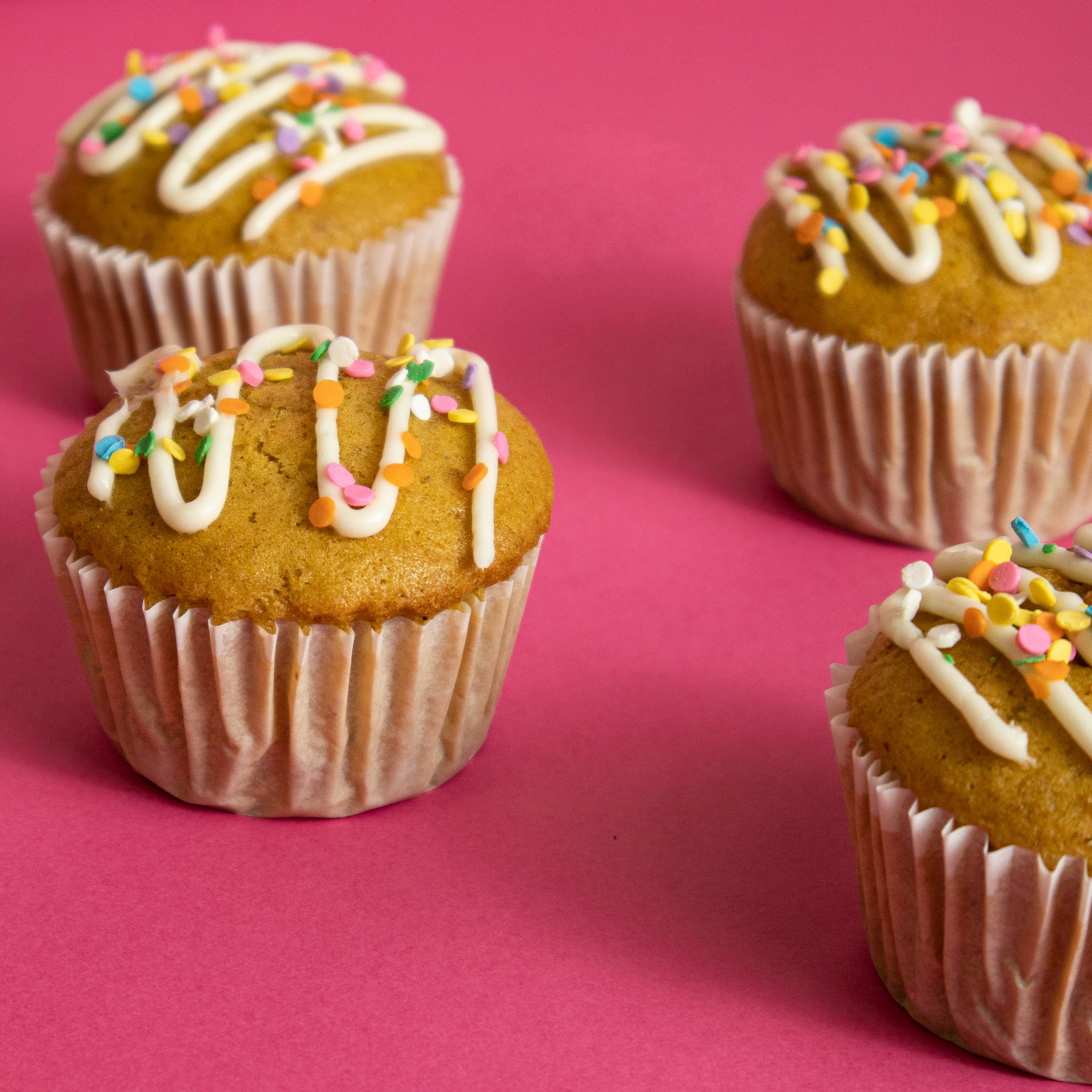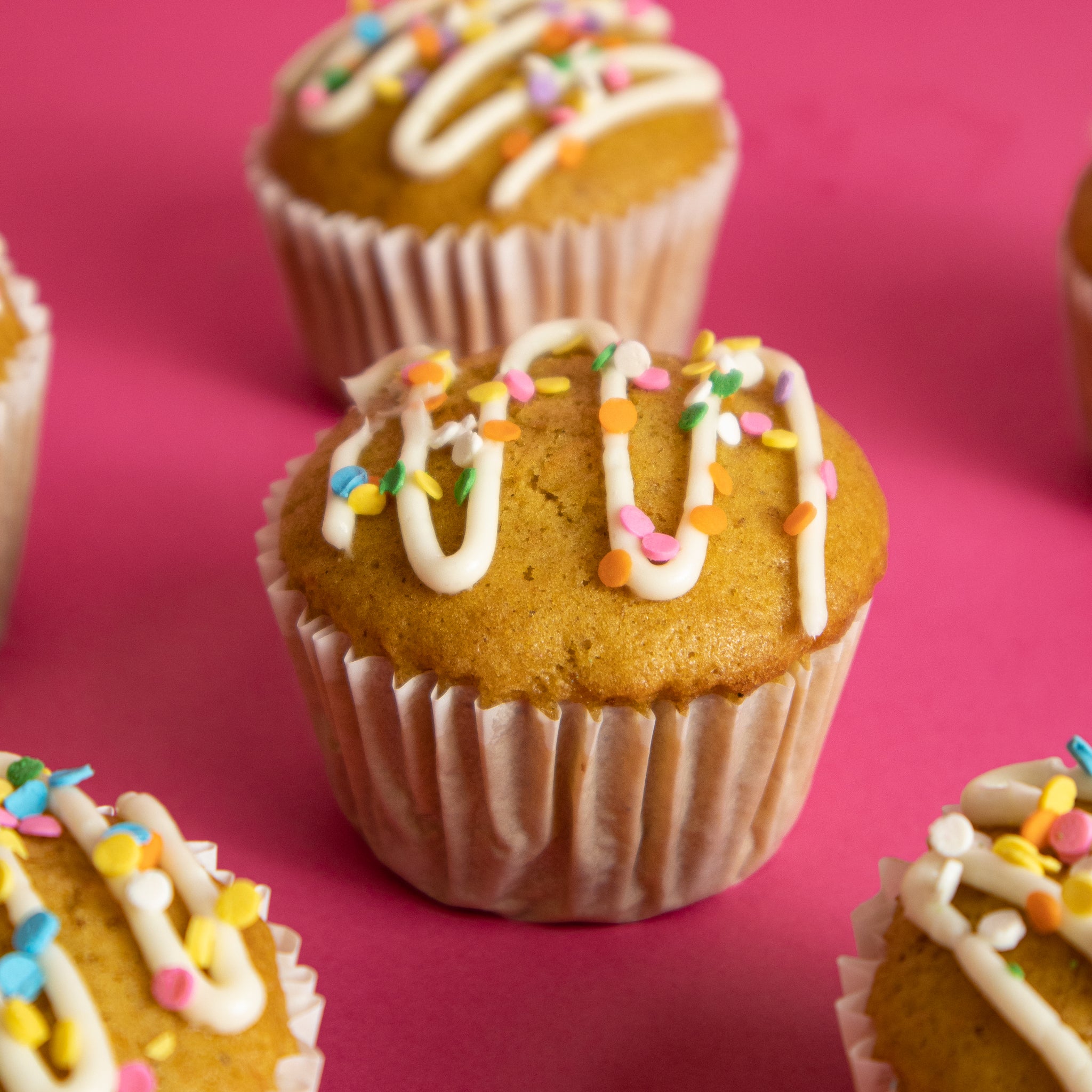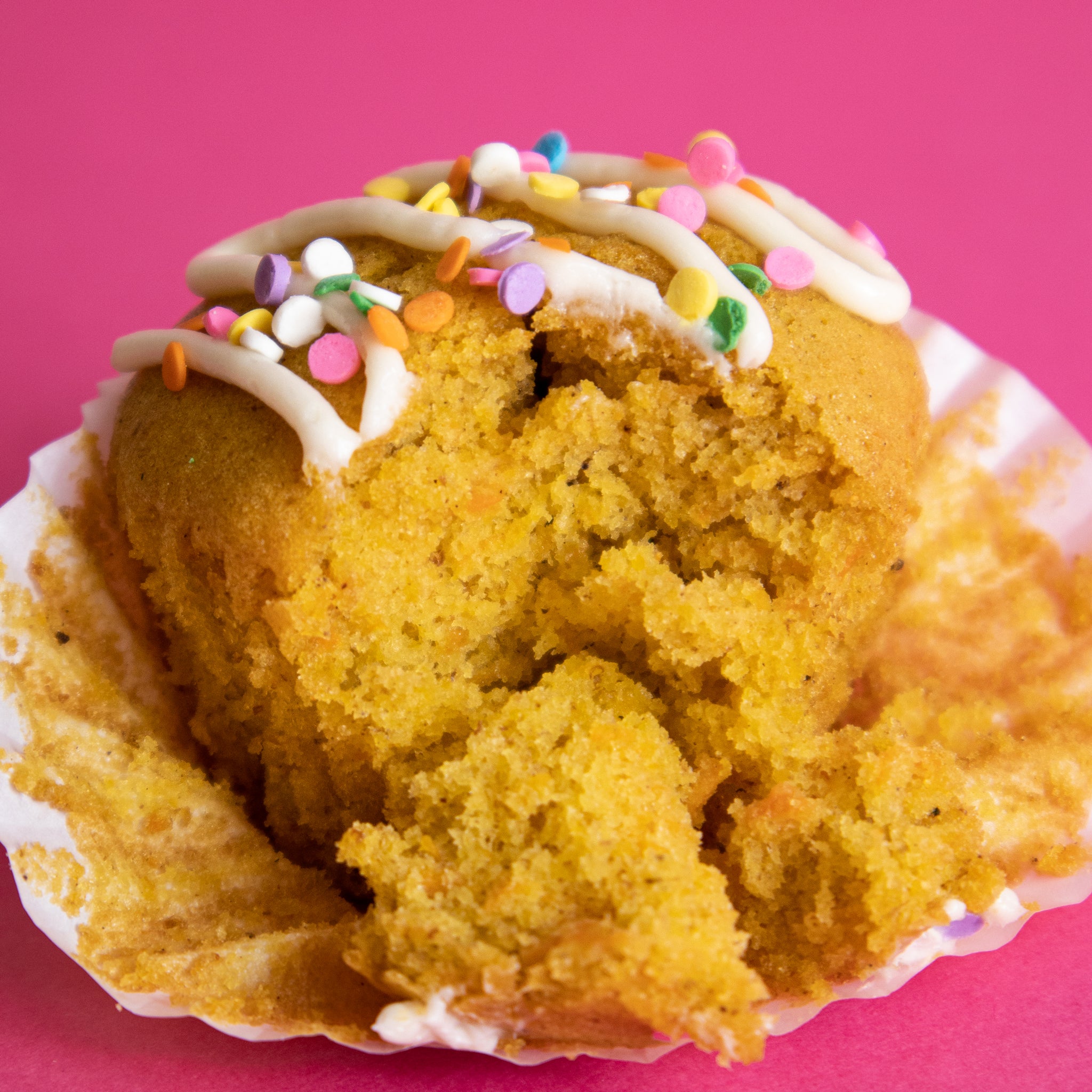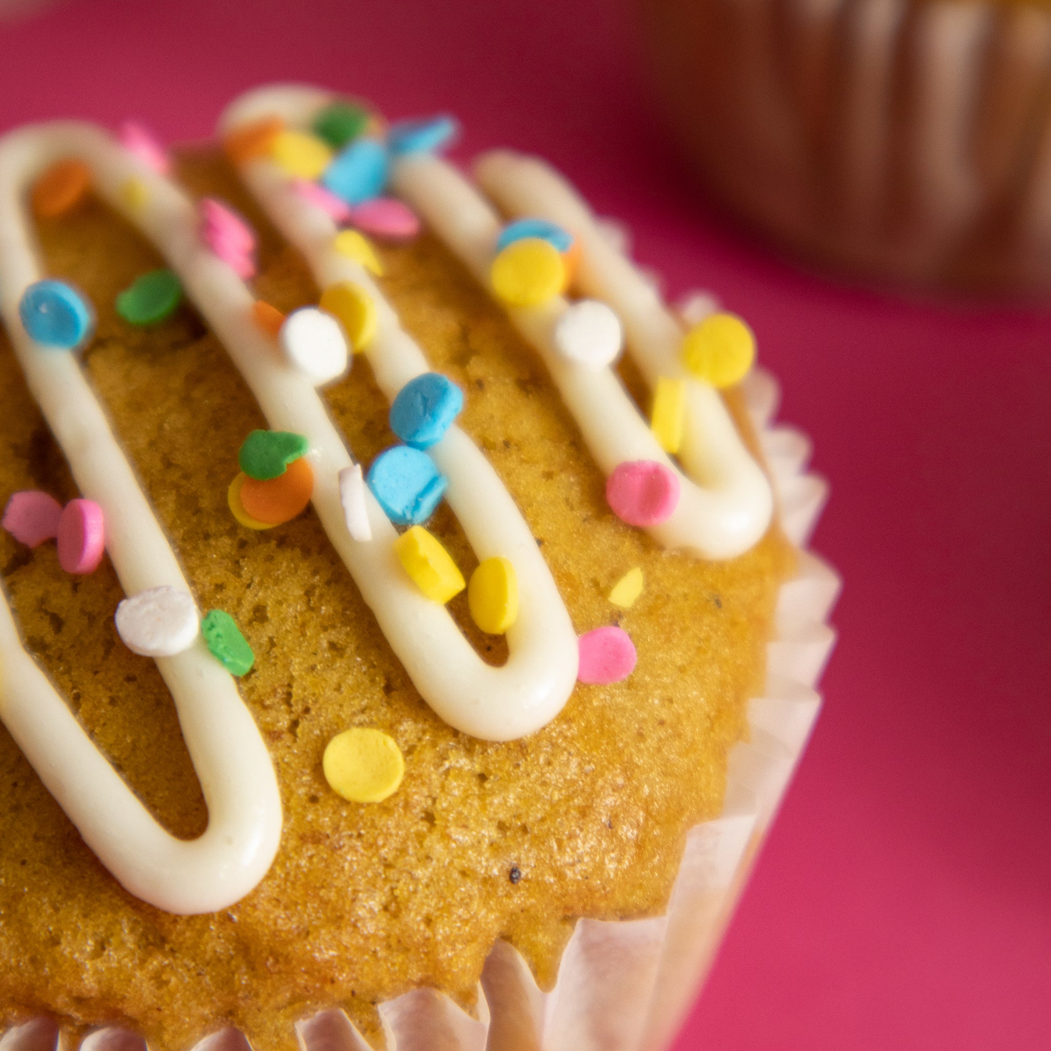 Deliciosos bollos de zanahoria con betún de queso crema y confetti, elaborados con bajo contenido de azúcar. Suaves, esponjosos y perfectos para disfrutar sin culpa.