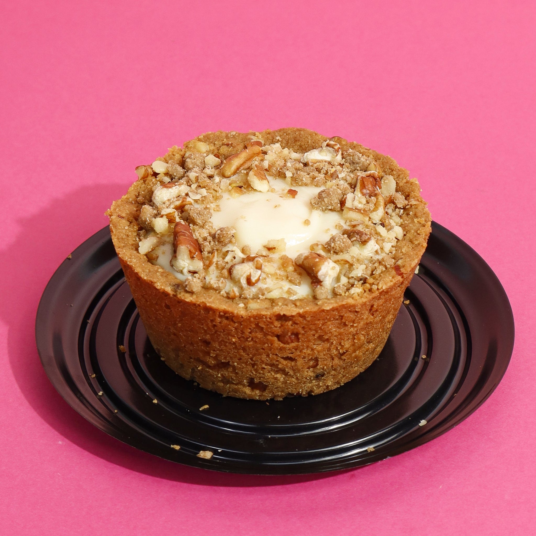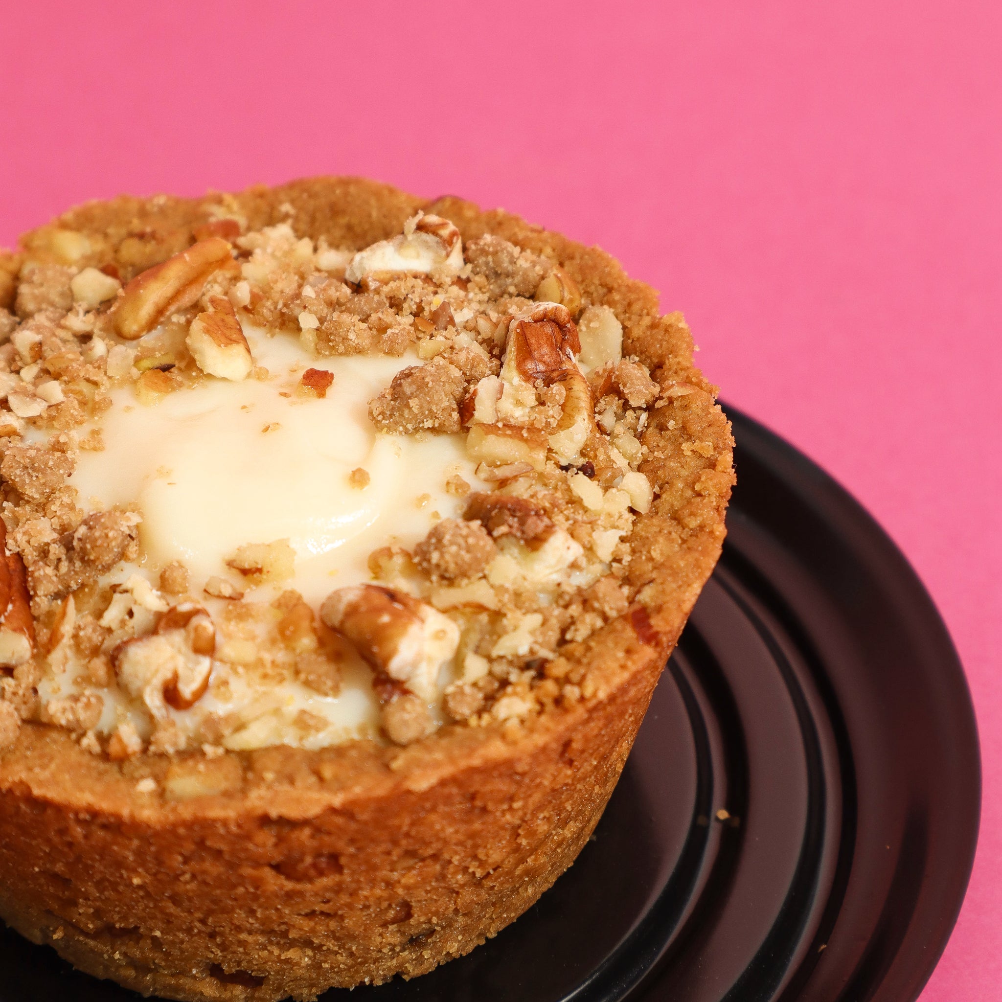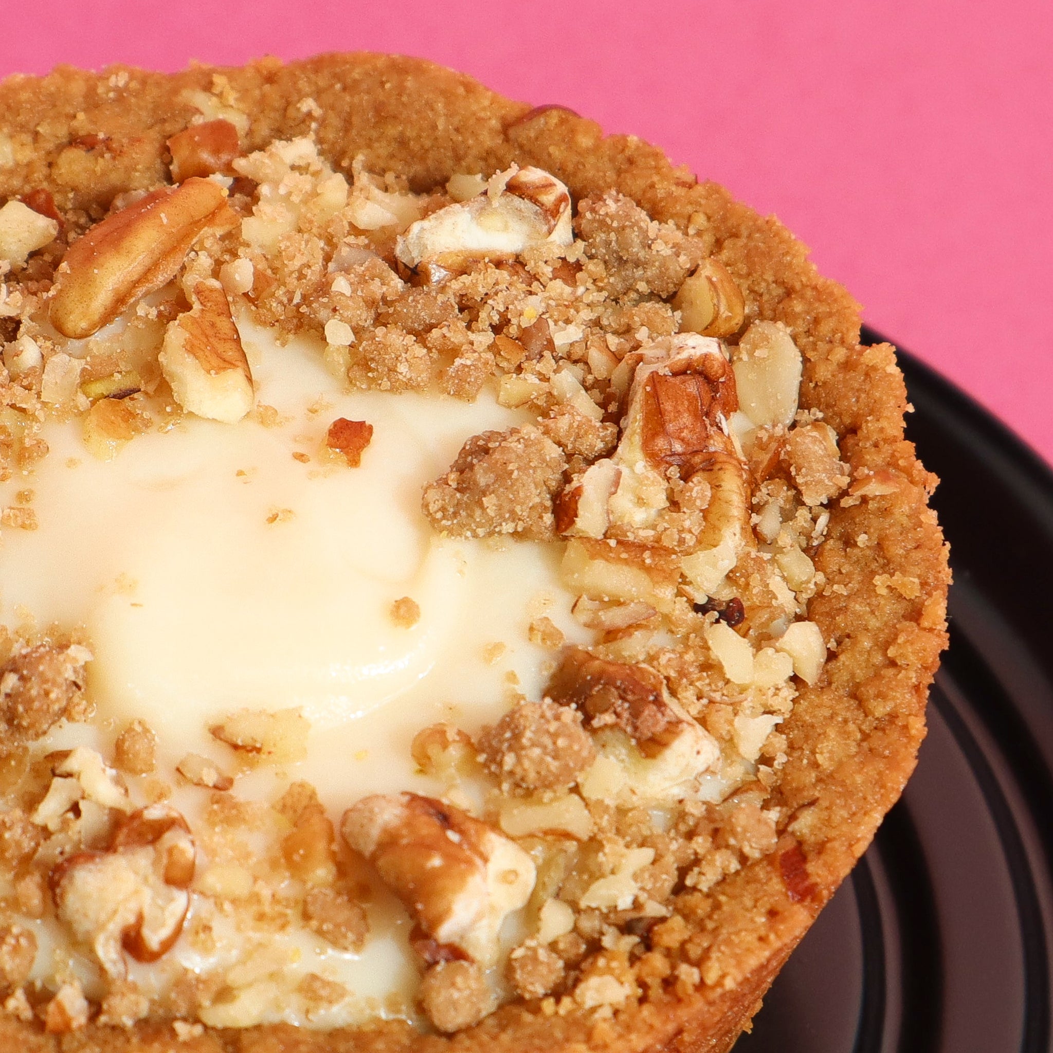 Una deliciosa tarta con costra de nuez crujiente, rellena de suave crema pastelera, rodajas de plátano fresco y un toque de dulce de leche, creando una combinación irresistible de sabores y texturas.
